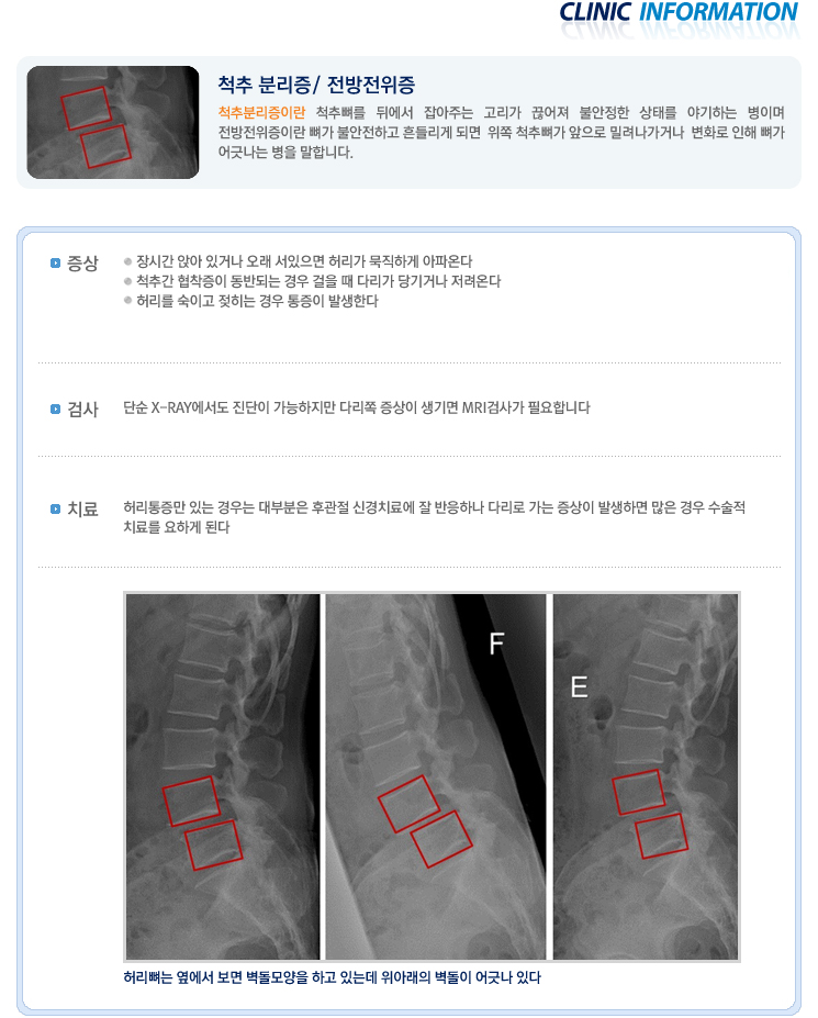 Home > 진료내용 > 질환정보 > 척추분리증/전방전위증
